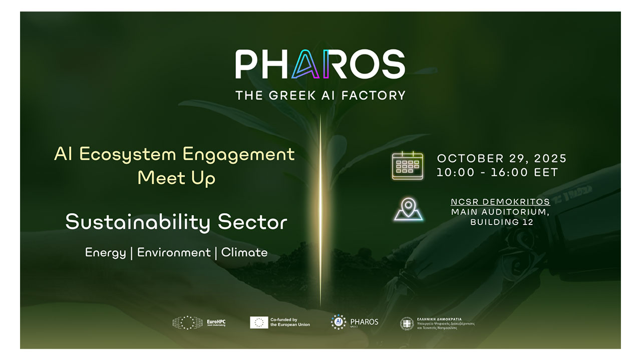 Το Εθνικό Κέντρο Τεκμηρίωσης και Ηλεκτρονικού Περιεχομένου (ΕΚΤ), εταίρος του ευρωπαϊκού έργου PHAROS AI Factory, σας προσκαλεί να συμμετάσχετε στην πρώτη εκδήλωση AI Ecosystem Engagement Meet Up: Sustainability Sector” η οποία επικεντρώνεται στον τομέα της Βιωσιμότητας (ενέργεια, περιβάλλον, κλίμα). Η εκδήλωση θα πραγματοποιηθεί την Τετάρτη 29 Οκτωβρίου 2025, (10:00-16:00), στο ΕΚΕΦΕ «Δημόκριτος» (Κεντρικό Αμφιθέατρο, Κτίριο 12).