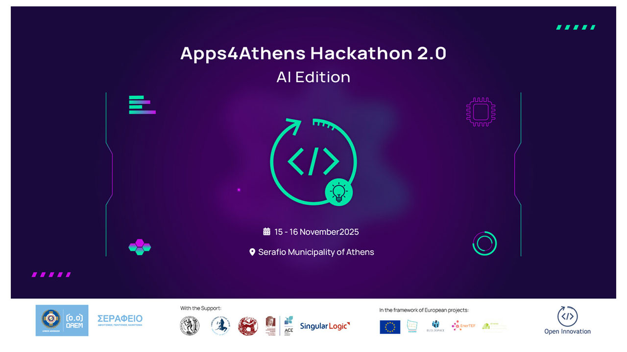 Ο Δήμος Αθηναίων διοργανώνει στις 15 και 16 Νοεμβρίου τον 2ο Μαραθώνιο Καινοτομίας «Apps4Athens Hackathon 2.0: AI Edition», με στόχο τον ψηφιακό μετασχηματισμό της πόλης, μέσα από την αξιοποίηση της Τεχνητής Νοημοσύνης και τη συμμετοχή των πολιτών. Η δράση που υλοποιείται από τη ΔΑΕΜ Α.Ε., Ανώνυμη Αναπτυξιακή Εταιρεία Μηχανογράφησης και Επιχειρησιακών Μονάδων ΟΤΑ του Δήμου, φιλοδοξεί να αποτελέσει ένα δυναμικό περιβάλλον δημιουργίας και συνεργασίας.