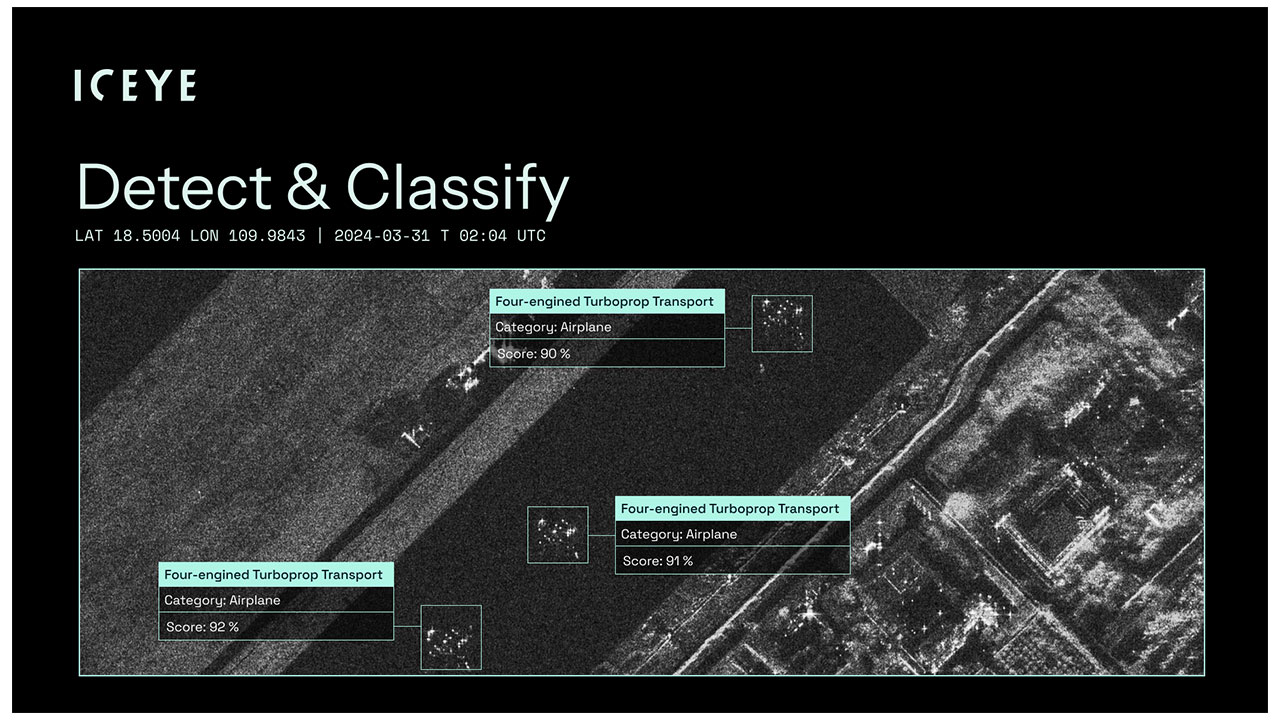 Η ICEYE δεν σταματά να καινοτομεί, και σε συνεργασία με τη SATIM, παρουσιάζει το νέο προϊόν «Detect & Classify». Ο συνδυασμός των εικόνων υψηλής πιστότητας της ICEYE με τους προηγμένους αλγορίθμους Τεχνητής Νοημοσύνης της SATIM επιτρέπει την ανίχνευση και κατηγοριοποίηση πλοίων, αεροσκαφών και οχημάτων με ακρίβεια άνω του 90%, μειώνοντας δραστικά τον χρόνο και τα εμπόδια της χειροκίνητης ανάλυσης δεδομένων. Το προϊόν παρέχει δεδομένα αντικειμένων μαζί με τις αντίστοιχες εικόνες SAR, προσφέροντας σε αναλυτές και επιχειρησιακές ομάδες επίγνωση της κατάστασης σε θαλάσσιο, εναέριο και χερσαίο περιβάλλον, σχεδόν σε πραγματικό χρόνο για λήψη ταχύτερων, τεκμηριωμένων αποφάσεων.