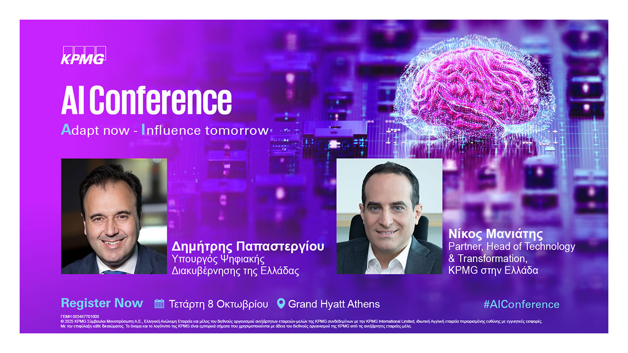 Την Τετάρτη 8 Οκτωβρίου, η KPMG στην Ελλάδα διοργανώνει το AI Conference, με κεντρικό μήνυμα “Adapt Now – Influence Tomorrow”, στο Grand Hyatt Athens. Το συνέδριο έρχεται σε μια κομβική στιγμή για την παγκόσμια και ελληνική τεχνολογική κοινότητα, καθώς η ταχύτατη ενσωμάτωση της Τεχνητής Νοημοσύνης (ΤΝ) επαναπροσδιορίζει μοντέλα διακυβέρνησης, επιχειρησιακές στρατηγικές και καθημερινές λειτουργίες, από τον δημόσιο τομέα μέχρι τον χώρο της άμυνας και της εκπαίδευσης.
