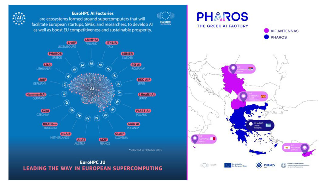 Το Ελληνικό «Εργοστάσιο» Τεχνητής Νοημοσύνης «PHAROS» γίνεται πλέον περιφερειακός κόμβος TN της Nοτιο-ανατολικής Ευρώπης, καθώς εγκρίθηκαν οι προτάσεις για τη δημιουργία τεσσάρων AI Factory Antennas, σε Κύπρο, Μάλτα, Βόρεια Μακεδονία και Σερβία, τα οποία θα συνδέονται με το «PHAROS». Με τον τρόπο αυτό δημιουργείται ένα οικοσύστημα ΤΝ στη Νοτιο-ανατολική Ευρώπη με επίκεντρο την Ελλάδα και τέσσερις περιφερειακούς κόμβους, που μοιράζονται υπολογιστικούς πόρους, δεδομένα και εργαλεία. Αξίζει να σημειωθει ότι από τα συνολικά δεκατρία (13) AI Factory Antennas της Ευρώπης, τα τέσσερα (4) θα διασυνδέονται με το ελληνικό εργοστάσιο ΤΝ «PHAROS».